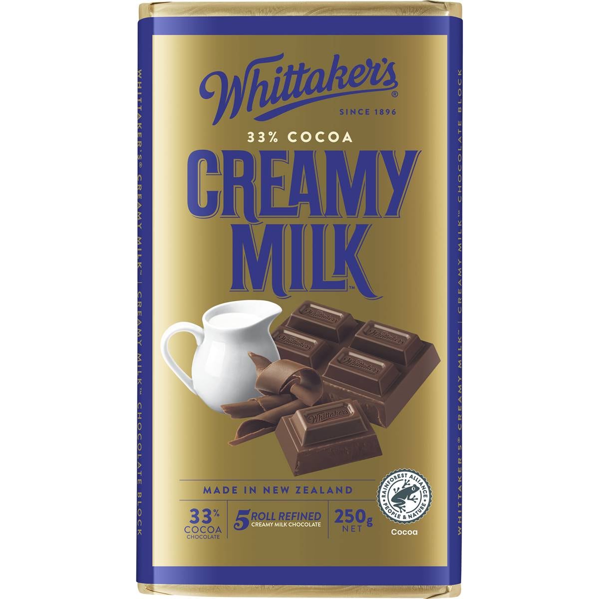 Whittakers Chocolate Block 33% Cocoa Creamy Milk 250g