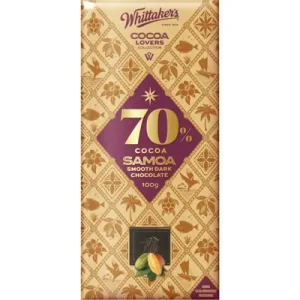 Whittakers Cocoa Lovers Chocolate Block 70% Samoa Dark Choc