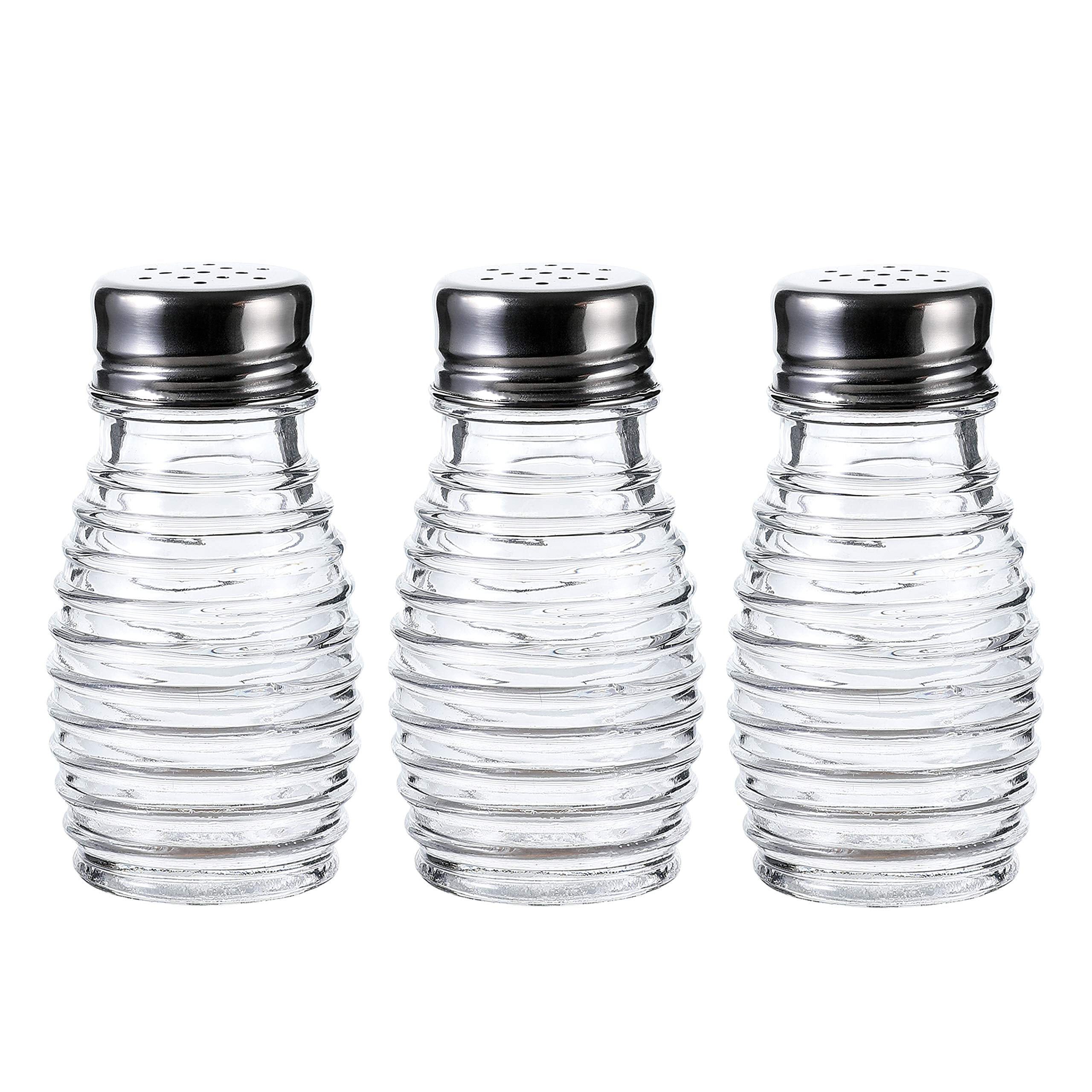 WHOLE HOUSEWARES | Stainless Steel Salt and Pepper Shakers Set | 3-Piece Pack | Pepper and Salt Shakers for Kitchen | Clear (2X3.5inch)