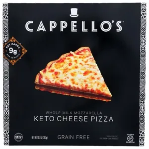 Crust: Turnip, Almond Flour, Egg, Mozzarella Cheese (Pasteurized Milk, Cheese Cultures, Salt, Enzymes), Flaxseed, Organic Coconut Flour, Extra Virgin Olive Oil, Coconut Oil, Water, Psyllium Husk, Xanthan Gum, Lemon Juice, Apple Cider Vinegar, Sea Salt, Toppings: Mozzarella Cheese (Pasteurized Milk Cheese Cultures, Salt, Enzymes), Pizza Sauce (Tomato Puree [Water, Tomato Paste] Olive Oil, Salt, Garlic, Basil, Black Pepper, Citric Acid), White Cheddar Cheese (Pasteurized Cheese Cultures, Enzymes), Contains: Almond, Coconut, Egg, Milk