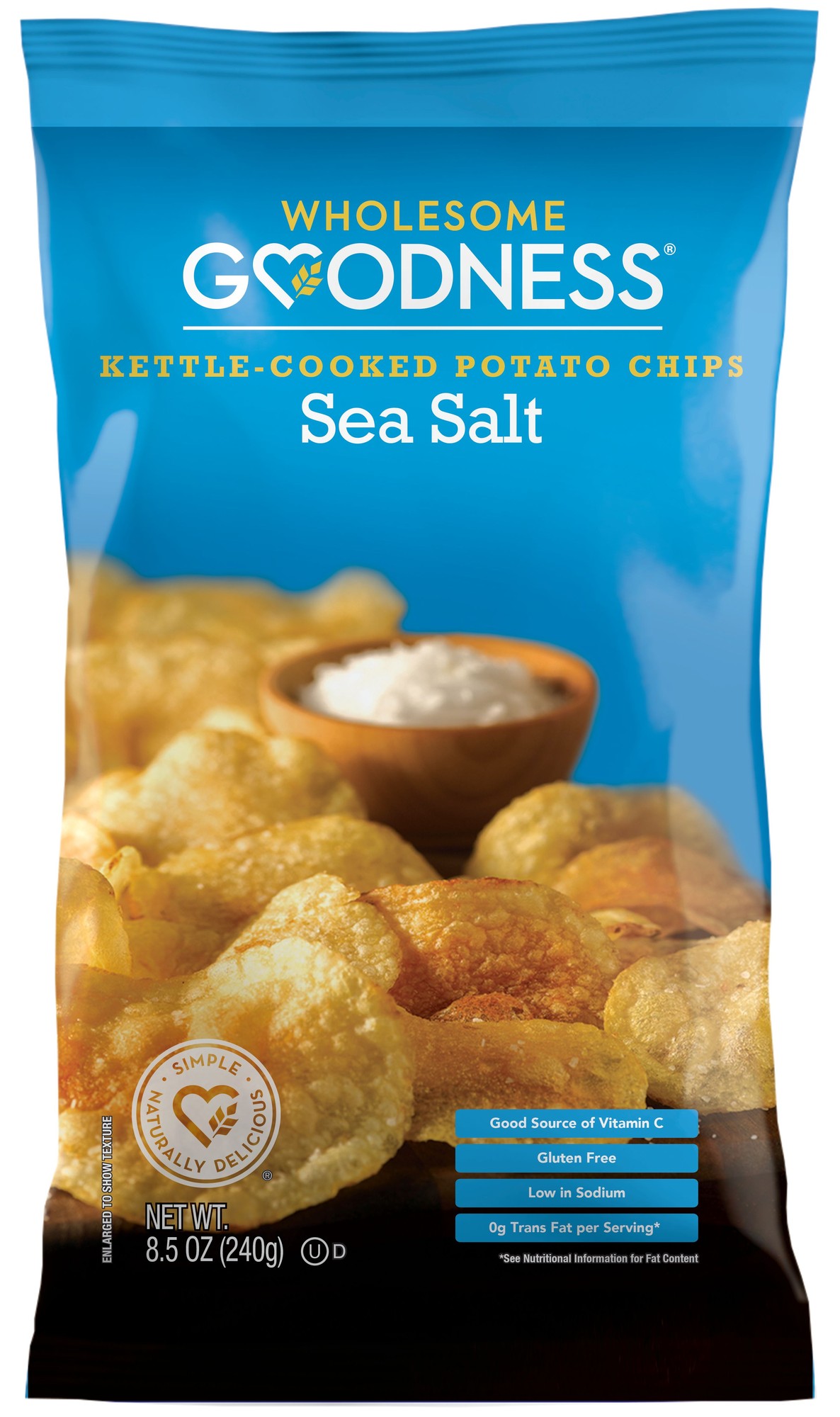 Wholesome Goodness Sea Salt Kettle Cooked Potato Chips - Gluten Free, Low Sodium, Artisan Crafted - 8.5oz