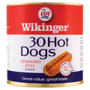 Wikinger 30 Hot Dogs Beechwood Smoked Bockwurst Style in Brine 3000g