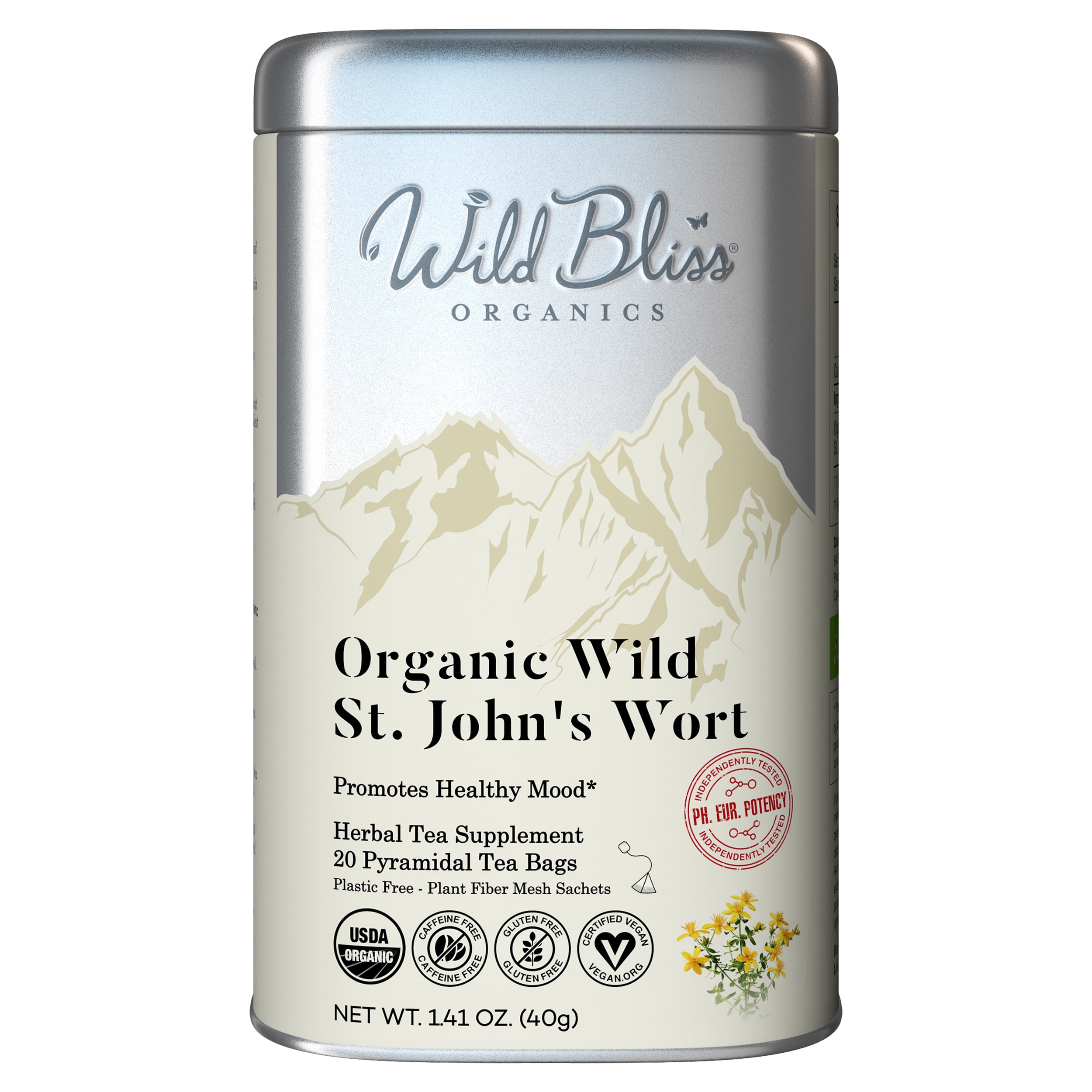 Wild Bliss Organic St Johns Wort Herbal Tea – Caffeine Free Daily Wellness Infusion - 20 Tea Bags