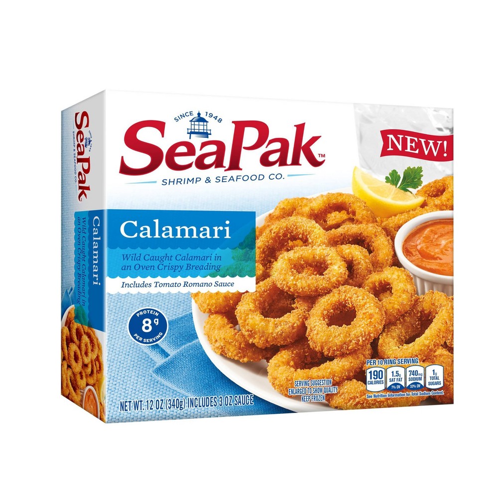 Squid, Bleached Wheat Flour, Soybean Oil, Water, Wheat Flour, Cornstarch, Powdered Egg Whites, Yellow Corn Flour, Contains Less Than 2% of the Following: Salt, Sugar, Enriched Wheat Flour (Wheat Flour, Niacin, Reduced Iron, Thiamine Mononitrate, Riboflavin, Folic Acid), Modified Cornstarch, Garlic Powder, Yeast Extract, Whey Powder (A Milk Derivative), Yeast, Methylcellulose, Disodium Inosinate and Disodium Guanylate, Leavening (Sodium Acid Pyrophosphate, Baking Soda), Sodium Alginate, Citric Acid, Paprika Oleoresin, Sodium Citrate, Sodium Carbonate.Sauce: Water, Tomatoes, Cream, Sugar, Parmesan and Romano Cheese [Pasteurized Part Skim Milk, Cheese Culture, Salt, Enzyme], Salt, Cornstarch, Red Bell Pepper Puree [Red Bell Pepper, Salt, Citric Acid], Garlic Powder, Skim Milk, Spices, Lemon Juice Concentrate, Onion Powder, Locust Bean Gum, Natural Flavor