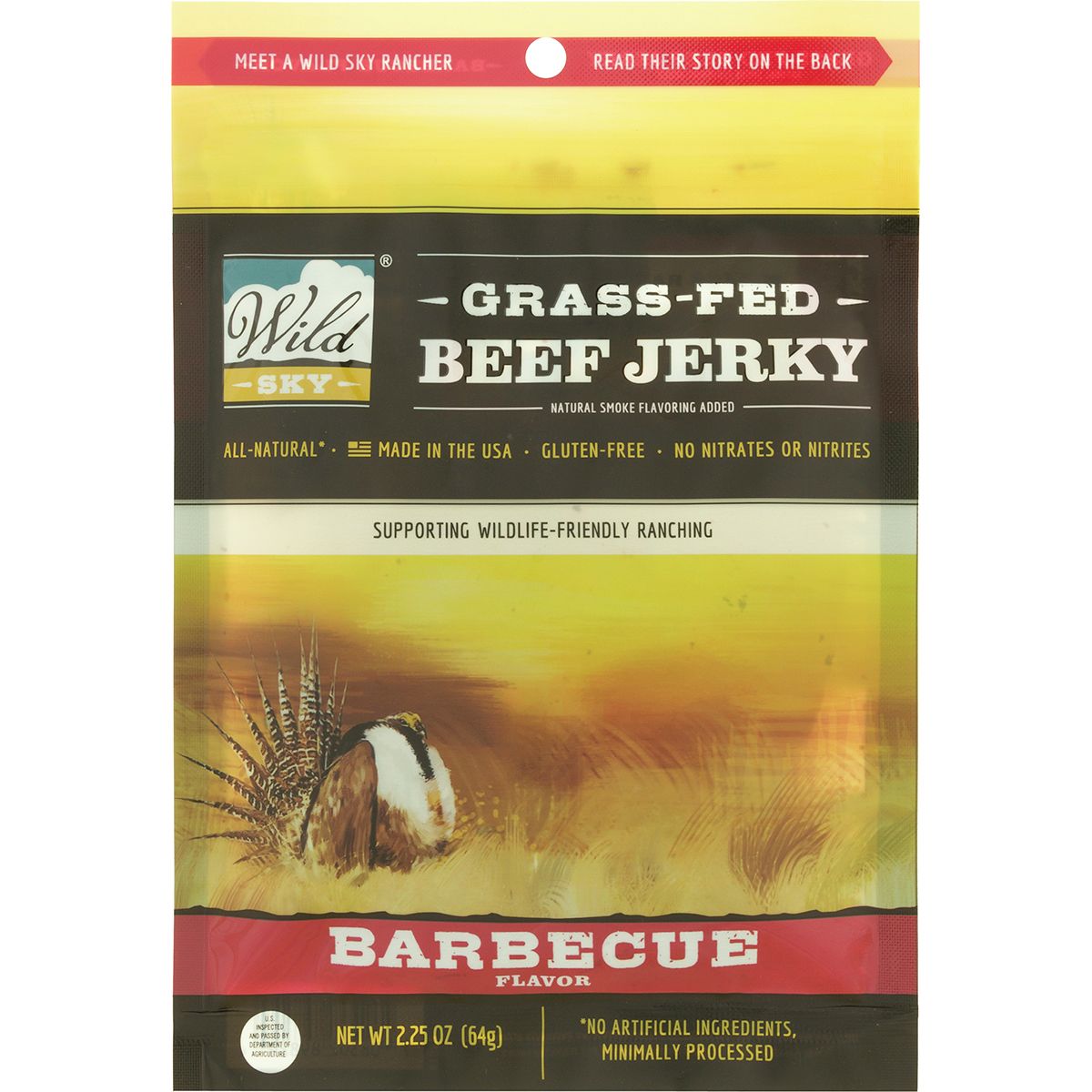 Wild Sky Barbecue Grass-Fed Beef Jerky - 100% All Natural (4-Pack, 2.25 oz pouch)