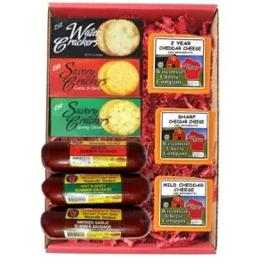 WISCONSIN'S BEST AND WISCONSIN CHEESE COMPANY -Popular 100% Wisconsin Big Deluxe Cheddar Cheese, Sausage & Cracker Gift Box. Great Gift for Delivery!