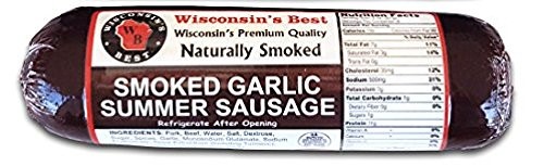 WISCONSIN'S BEST - Smoked Summer Sausage - GARLIC - Naturally Hickory Smoked - 12 oz - Slice and Eat