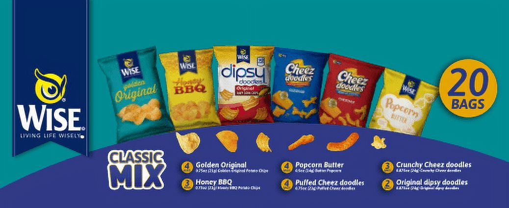 Wise Snacks Clasic Mix Variety Pack (20 Count), Gluten Free, Snack Size Chips Bulk Box, Perfect for Lunches and Snacks Single Serve Packs