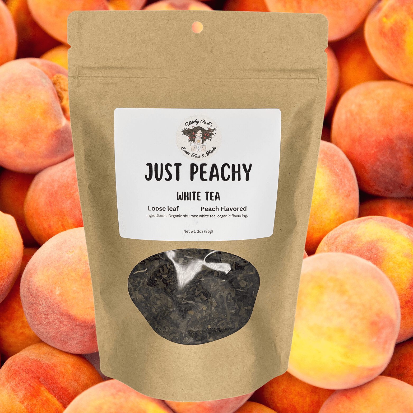 Witchy Pooh's Just Peachy Loose Leaf Peach Tea, Low Caffeine Content, 3oz Pouch