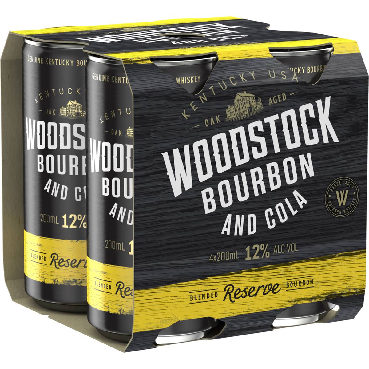 Woodstock Bourbon & Cola 12% Cans 200ml x4 pack