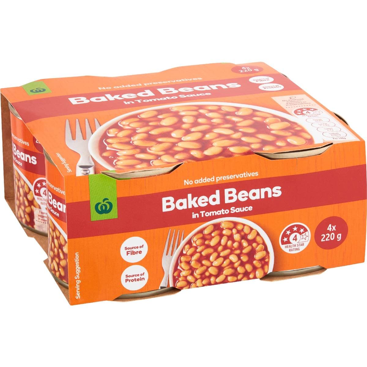 Woolworths Baked Beans In Tomato Sauce 220g x 4 pack