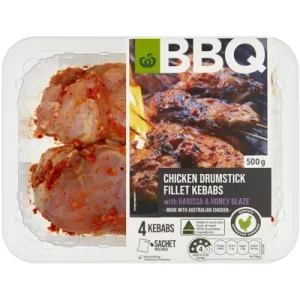 Woolworths Bbq Chicken Drumstick Fillet Kebbabs Harissa & Honey Glaze