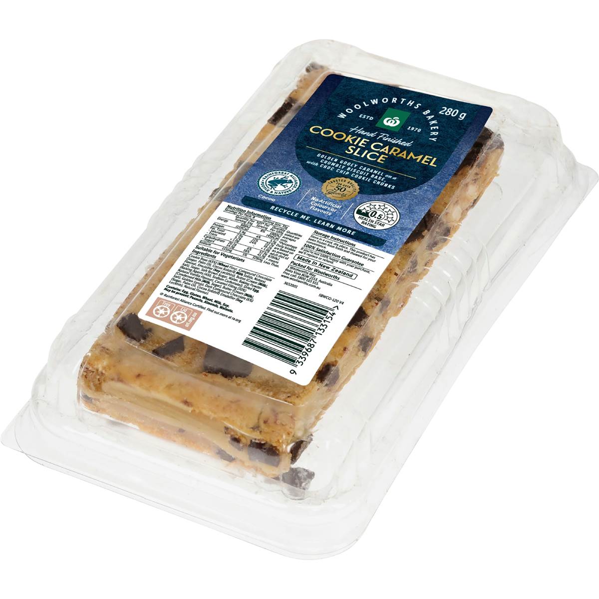 Cookie Base (64%) (Wheat Flour, Sugar, Dark and White Compound Chocolate (18%) (Sugar, Vegetable Fat (Palm), Milk Solids, Cocoa Powder, Vegetable Emulsifiers (322 from Soy, 492), Natural Flavour), Butter (17%) (Cream (Milk), Salt), Egg, Raising Agents (450, 500), Anti Caking Agent (170), Natural Vanilla Flavour), Caramel (30%) (Sugar, Milk, Cream (Milk), Water, Salt), Dark Chocolate (6%) (Sugar, Cocoa Solids, Milk Fat, Emulsifier (322 from Soy), Natural Flavour)