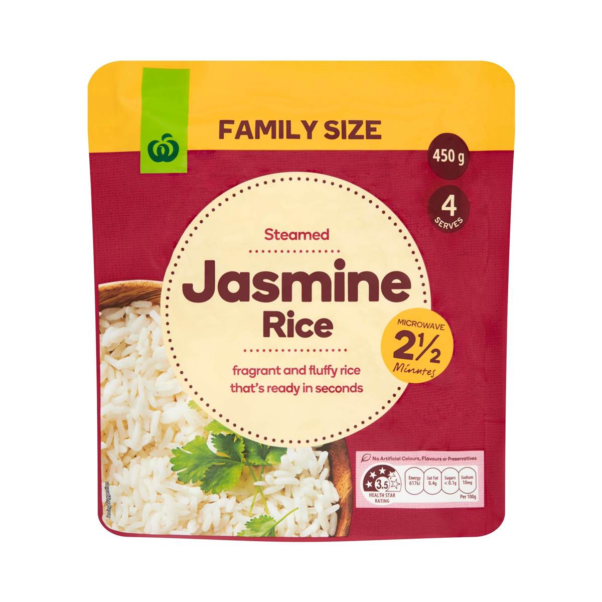 Woolworths Family Size Jasmine Rice 450g is available at 1 retailer