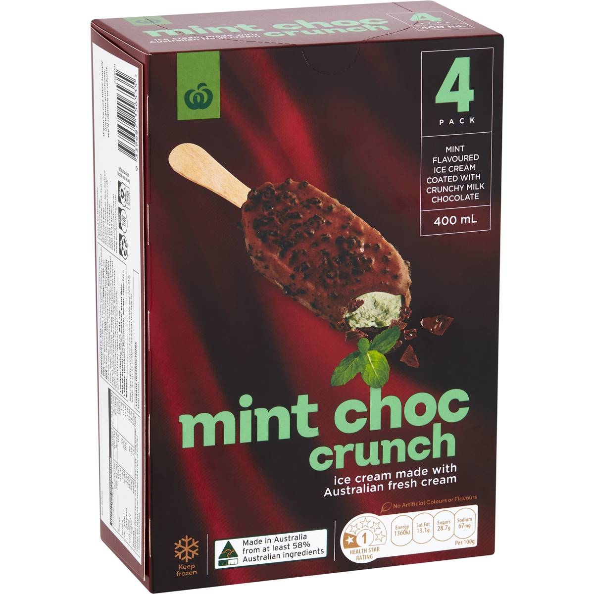 Woolworths Mint Choc Crunch Ice Cream 4 pack