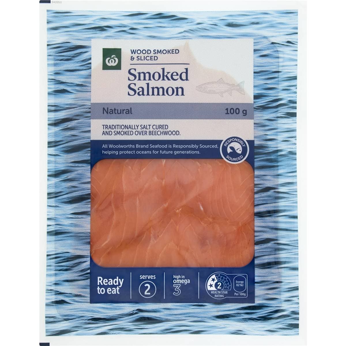Woolworths Wood Smoked & Sliced Smoked Salmon Natural 100g