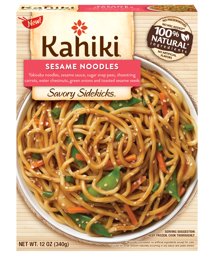 YAKISOBA NOODLES, SESAME SAUCE, SUGAR SNAP PEAS, SHOESTRING CARROTS, WATER CHESTNUTS, GREEN ONIONS AND TOASTED SESAME SEEDS, SESAME NOODLES