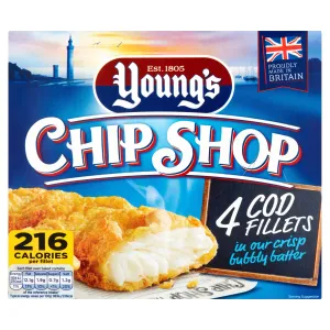 Young's Chip Shop 4 Cod Fillets in our Crisp Bubbly Batter 400g