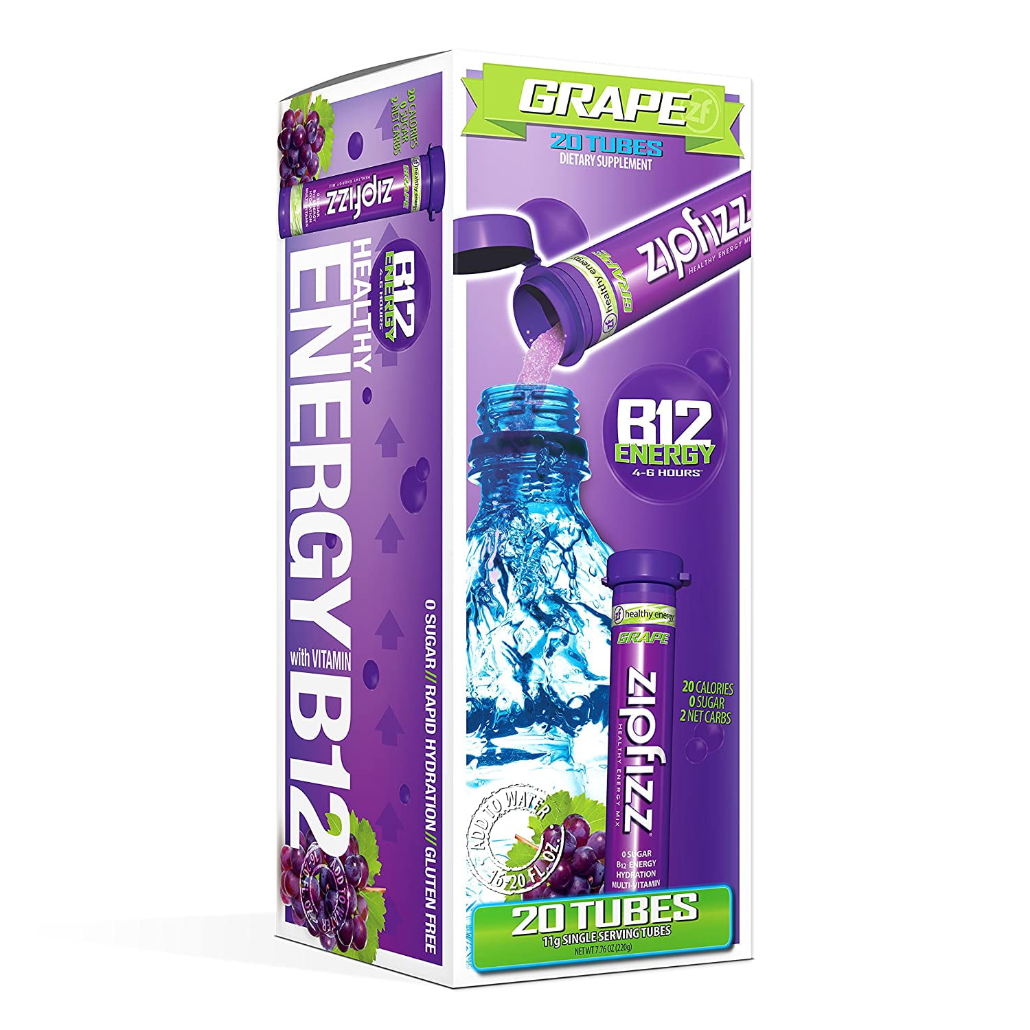 Zipfizz Healthy Energy Drink Mix, Hydration with B12 and Multi Vitamins, Grape, 20 Count