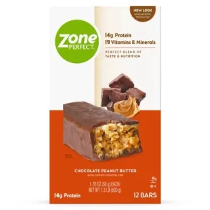 ZonePerfect Protein Bars, Chocolate Peanut Butter, 14g of Protein, Nutrition Bars With Vitamins & Minerals, Great Taste Guaranteed, 12 Bars